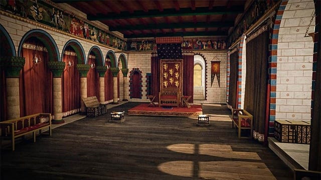 Encontramos também uma lareira ornamental e cadeiras de Louis XIII, Louis XIV, um belo baú de couro e especialmente fresques do século XVI representando cenas incluindo a cavalaria, apesar do fato de estarem parcialmente danificados, eles, no entanto merecem ser visto.